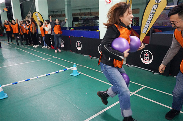 “企鵝漫步”接力 團隊越來越默契 “加油”、“穩(wěn)住”、“漂亮” 隊員之間氣氛越來越融洽
